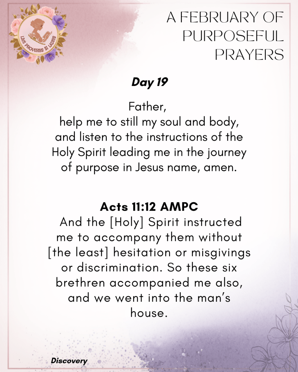 And the [Holy] Spirit instructed me to accompany them without [the least] hesitation or misgivings or discrimination.